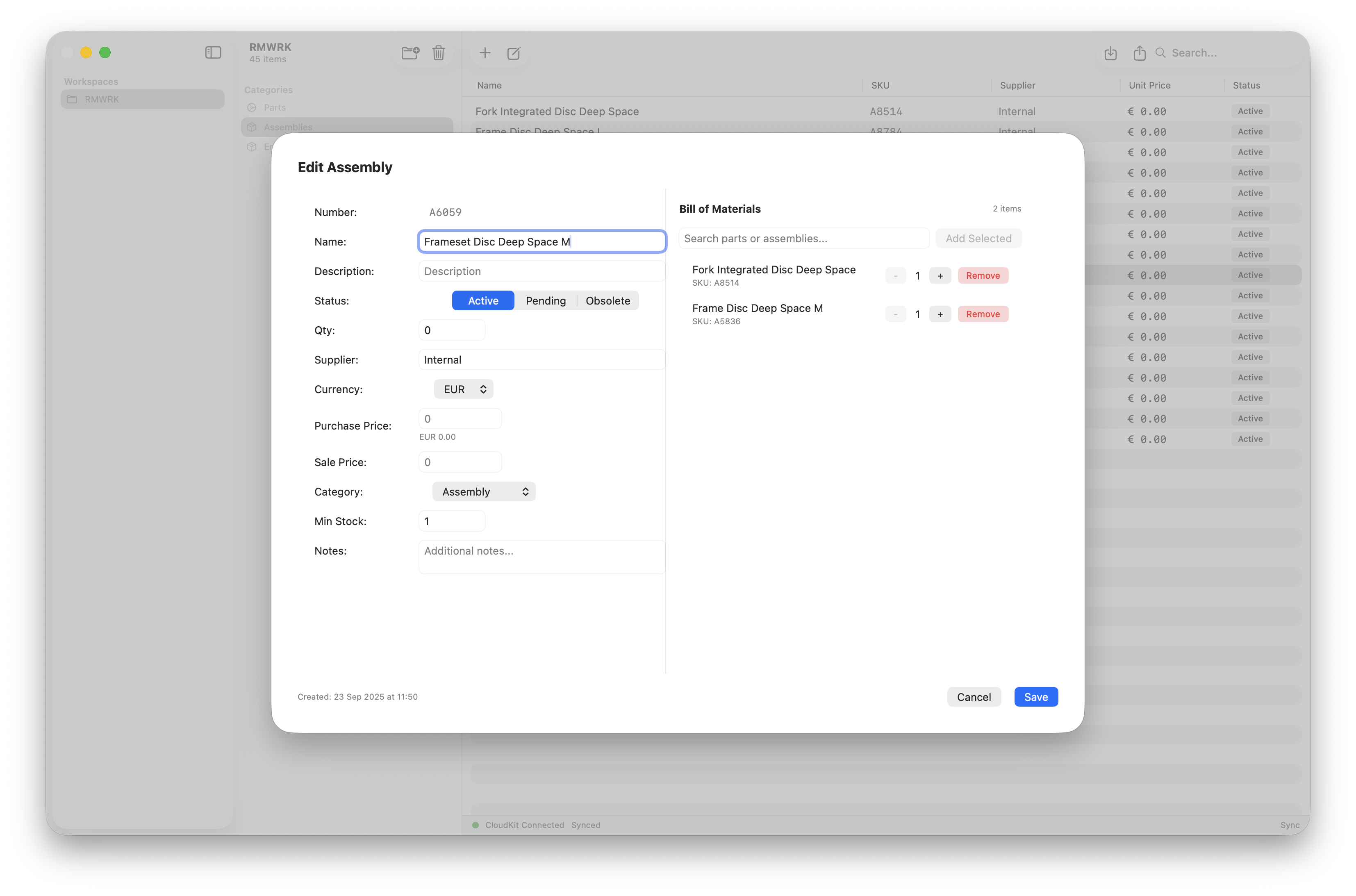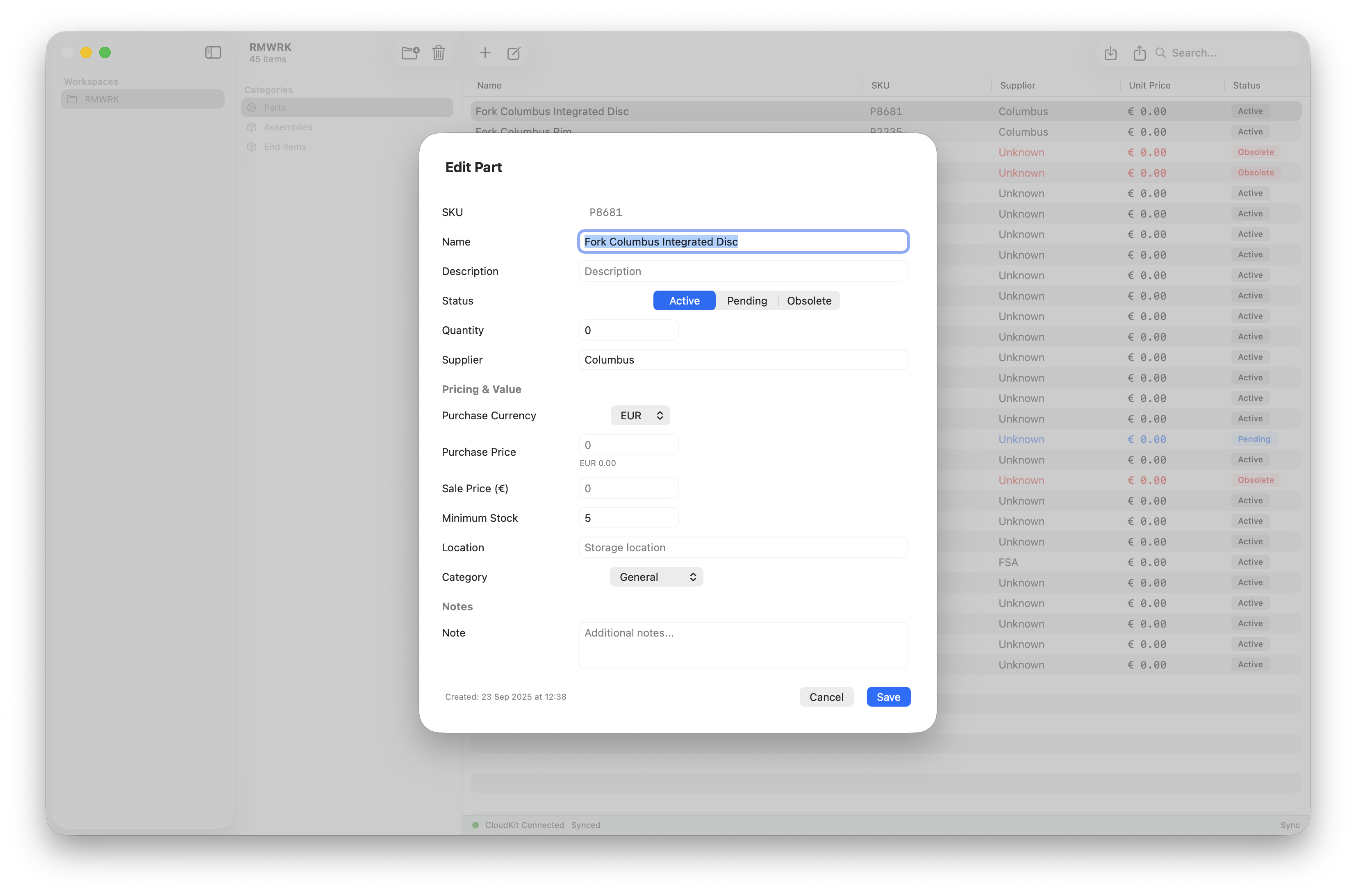 Keep track of your inventory with all parts, generated part numbers and more attributes.