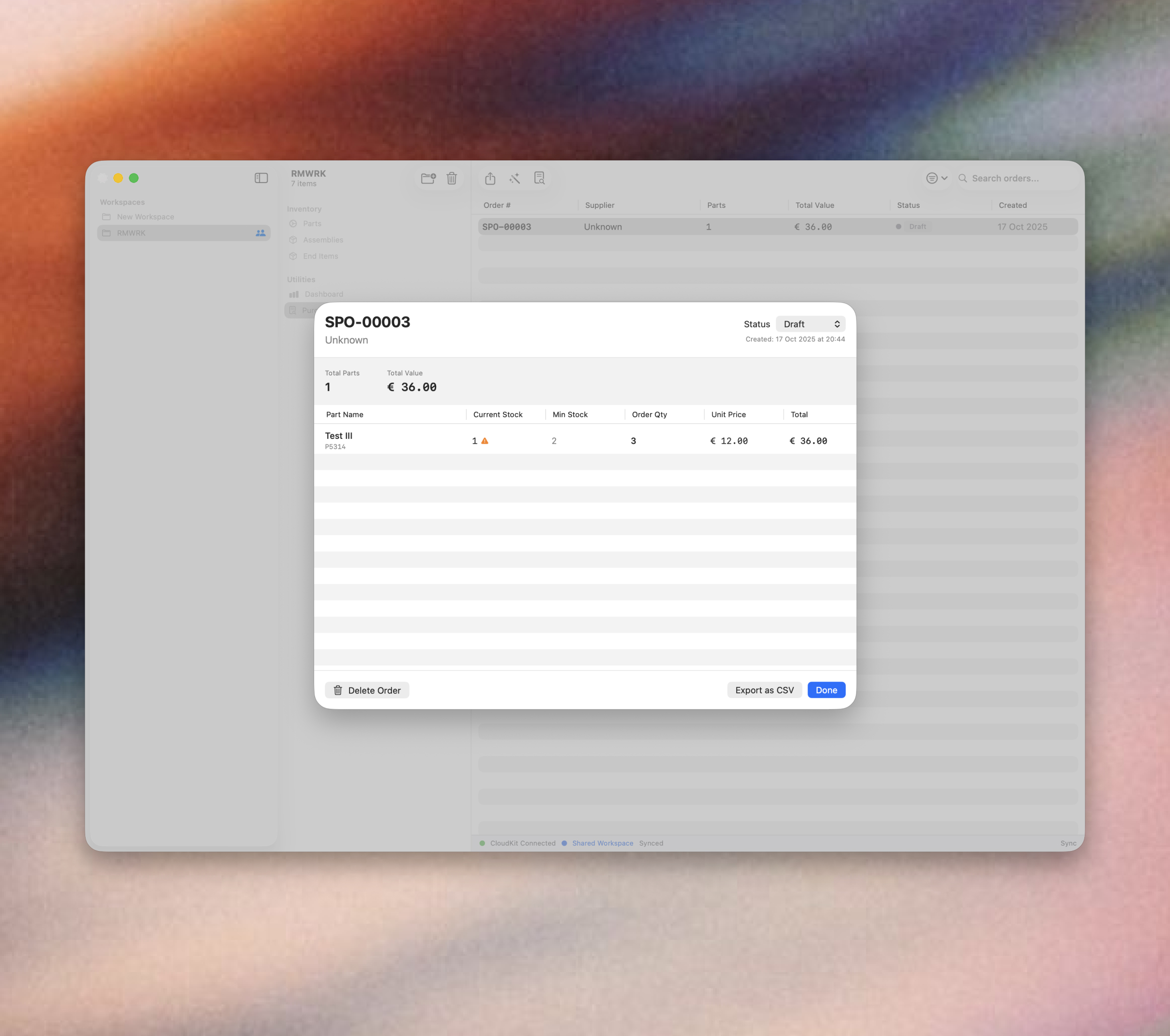 Create, track, and manage purchase orders directly in Verso. See what's on order, when it's expected, and automatically update inventory when items arrive. Track supplier performance, pricing history, and lead times all in one place.