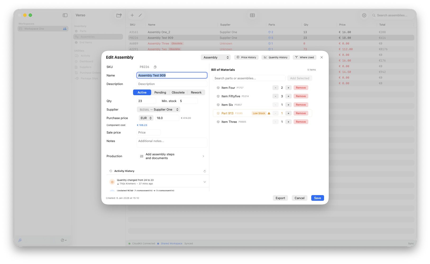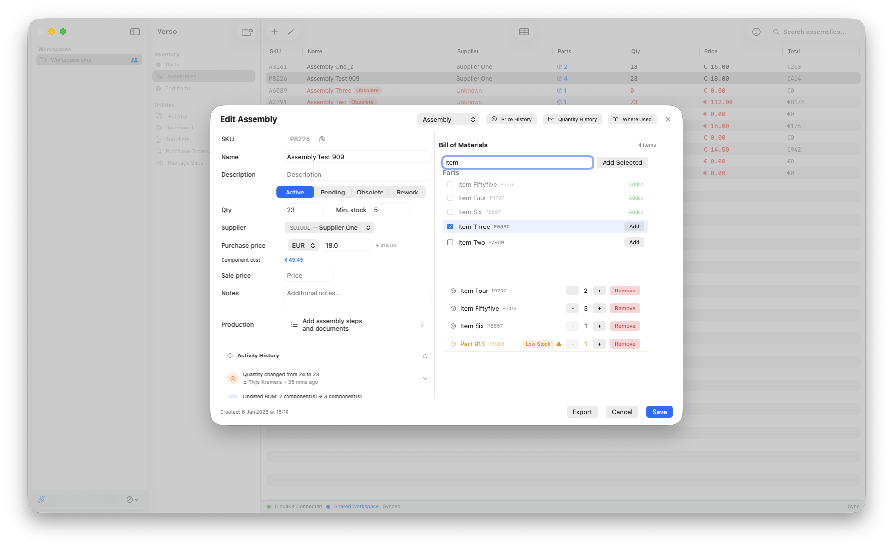 Assemblies are there to hold BOMs and make production neat and clear. Sometimes an assembly isn't up-to-date anymore. In that case you can change the BOM, however if it regards an existing assembly that can be a pain to manage. As the best practice still is to avoid BOM changes, in most cases it is standard procedure to create a new assembly. If you still have to make a rework on the assembly, we have you covered.